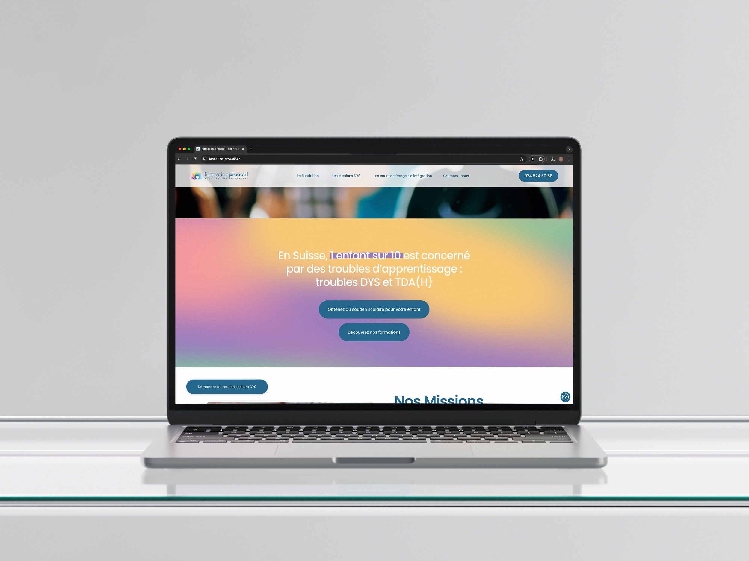 Pour la Fondation Proactif, un nouveau site web a été conçu avec une approche moderne et colorée. Le design intègre des animations et des éléments graphiques interactifs afin de rendre la navigation plus vivante. L’ensemble reflète l’identité de la fondation tout en facilitant la découverte de ses actions. L’objectif était de proposer une interface claire et attractive, en accord avec ses valeurs.